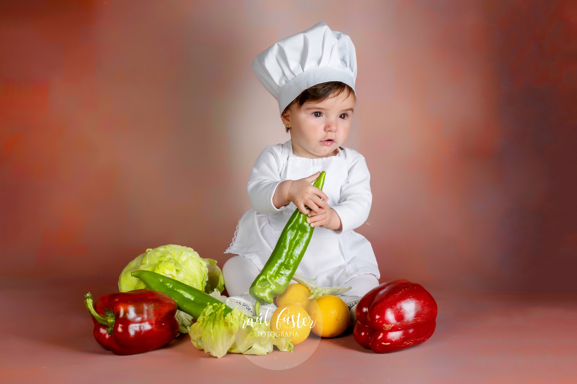 Mireia es un caramelo de niña y la conocemos desde que tenía un mes de vida. Esta sesión la hicimos con seis meses. Una de sus mamás es cocinera y ella por lo que vimos, está encantada con tanta comida a su alrededor. Con nuestros álbumes de seguimiento puedes hacer una colección preciosa del crecimiento de tus hijos/as fotografiando todas sus etapas.
